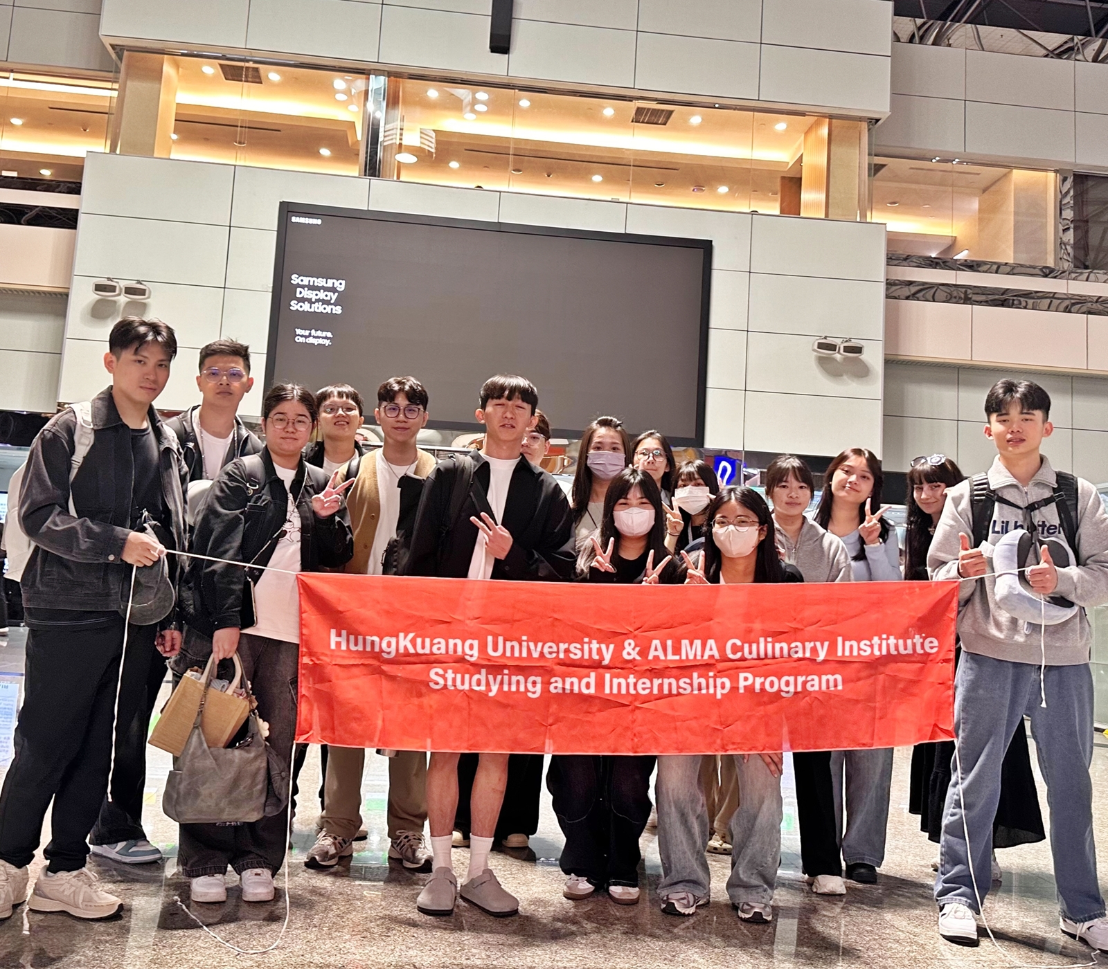 餐旅管理系12位大四學生與食品科技系3位大四學生,於9月16日出發前往義大利ALMA廚藝學院,進行為期8個月的實習。每位學生獲得教育部深耕計畫及學校經費補助近60萬元,將先到國際頂級廚藝學院上研習課程,再至義大利米其林餐廳、知名餐廳實習。
